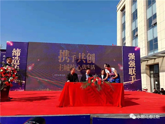 2018年10月27日,三方签约仪式在圣景水榭花都项目前广场盛大举行。三方主要领导及各部门代表、圣景·水榭花都项目业主及菏泽主流媒体代表共同出席签约仪式,见证了菏泽主城商业配套升级的历史时刻。