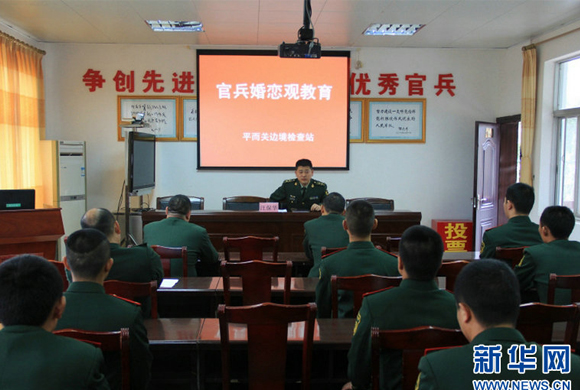 为帮助官兵树立健康正确的婚恋观,妥善处理好恋爱、婚姻中遇到的各种问题,8日,广西崇左边防支队平而关边境检查站组织全体官兵举办了一次革命军人婚恋观讲座。 此次教育,进一步规范了部队官兵婚恋管理工作,有效增强了部队凝聚力,促进了警营和谐。[详细]