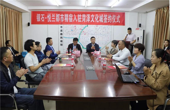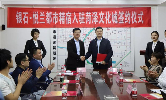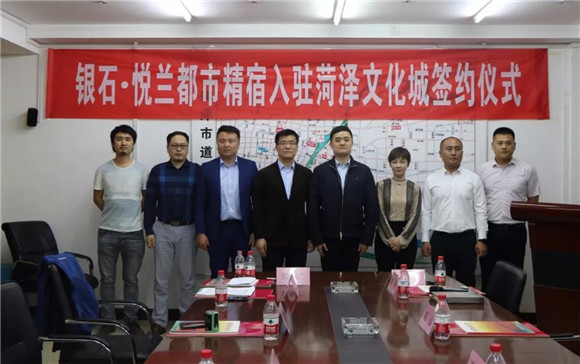 4月20日上午,春光明媚,暖风阵阵,山东福汉集团与山东银石商业集团在菏泽文化城三楼会议室,隆重举行“银石·悦兰都市精寓入驻菏泽文化城签约仪式”,山东福汉集团副董事长兼秘书长王子冰、山东福汉集团副总经理袁玥、山东福汉集团招商总监高山、山东银石商业集团董事长郑利广、山东银石酒店运营公司总经理王涵、山东房地产租赁和公寓管理专业委员会理事长杨炎博、青岛亚太协会品牌设计师王雷等主要领导和嘉宾参加了签约仪式,齐鲁晚报、菏泽日报、菏泽电视台、牡丹晚报、菏泽广播电视台、菏泽信息港、大众网和房产网等十余家媒体记者应邀参加签约仪式。此次签约标志着菏泽首家精宿公寓即将面世。