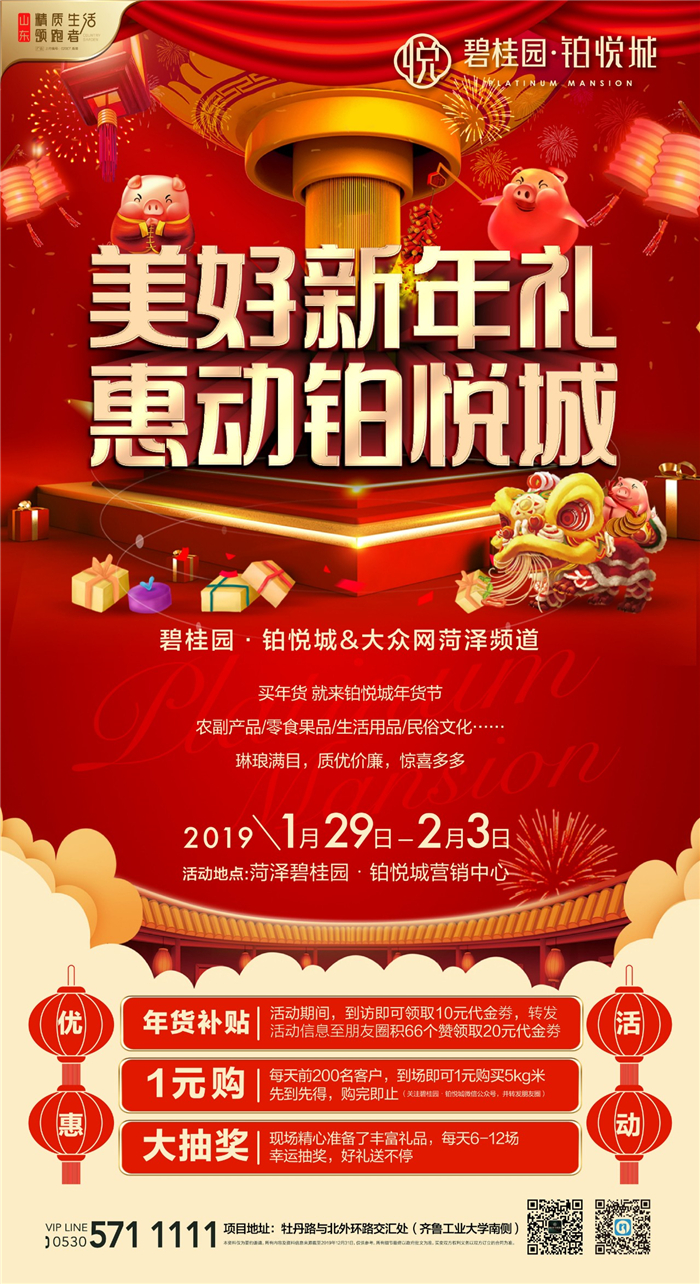 。时间:1月29日到2月3日,地点:碧桂园·铂悦城销售中心,牡丹路与北外环路交汇处(齐鲁工业大学南侧)