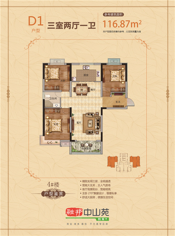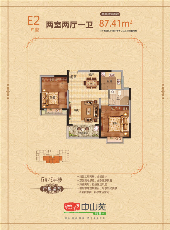 融邦·中山苑项目处菏泽城市中心CBD银座商圈及未来万达广场商圈两大商圈衔接中心,由长江路、府南街、中山路、规划支路围合而成,交通便捷,项目北临市委市政府,南与市实验小学仅一路之隔,周边有开发区中心医院、市实验中学、菏泽一中,银行网点、便民市场等生活配套齐全,是理想的宜居社区。项目由7栋高层住宅、1栋标准甲级写字楼,1栋酒店式公寓组合而成,其中沿中山路 1-4层为大型高档独立产权商铺,沿街商业与高层住宅之间设计为商业步行街,是集精品购物、商务办公、金融服务、餐饮娱乐、高档居住等功能于一体的大型城市功能区。