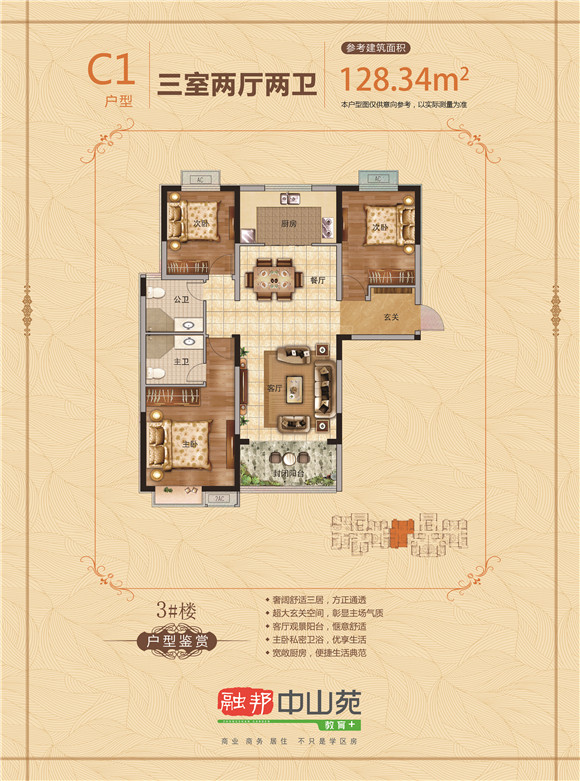 市区优质地段,万达、银座两大商圈辐射,区位优势明显;长江路、中山路交通便利;大市实验小学一路之隔,优质教育配套;内部规划2000㎡幼儿园及8000㎡中央大景观区;70-135㎡户型满足不同置业需求。