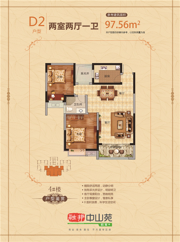 融邦·中山苑项目是以高端商业、办公、公寓和住宅为一体的大型商住地产项目,用地面积近5万平方,总建筑面积24万平方,住宅总户数1100余户。