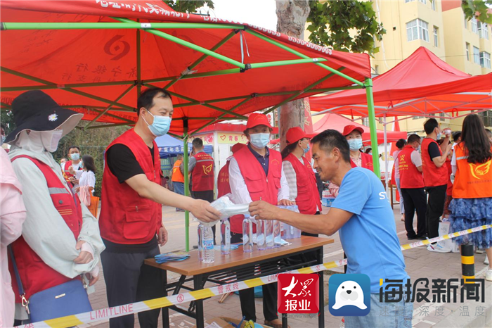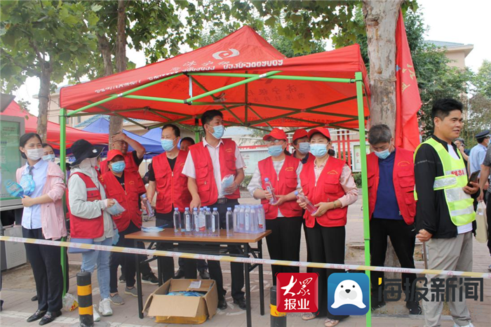 随后,志愿者们协助考点交警、公安维持考点外交通秩序,为考点维稳人员提供了饮用水、休息岗。