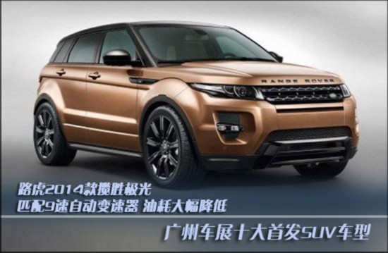 在本届广州车展上,路虎将带来2014款揽胜极光,其搭载了一款来自于ZF公司旗下的9速变速箱,据悉这也是世界上首款量产的9速自动挡车型。这一动力系统上的改变也是新款车型较老款相比最大的变化,同时全新9速变速器的匹配也使新款产品的油耗有望降低11.4%。
