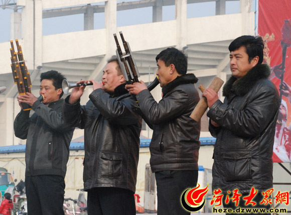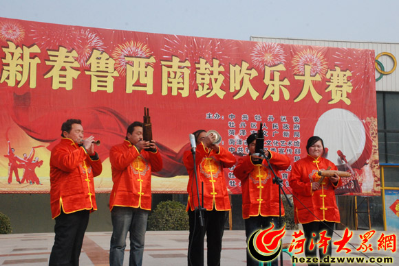 今天上午,牡丹区2013庆新春鲁西南鼓吹乐大赛在牡丹体育场举行,来自牡丹区各乡镇的8支代表队为观众演奏了一首首精彩的曲目,最终沙土镇代表队凭借曲目《拉呱》、《打枣》夺魁。
