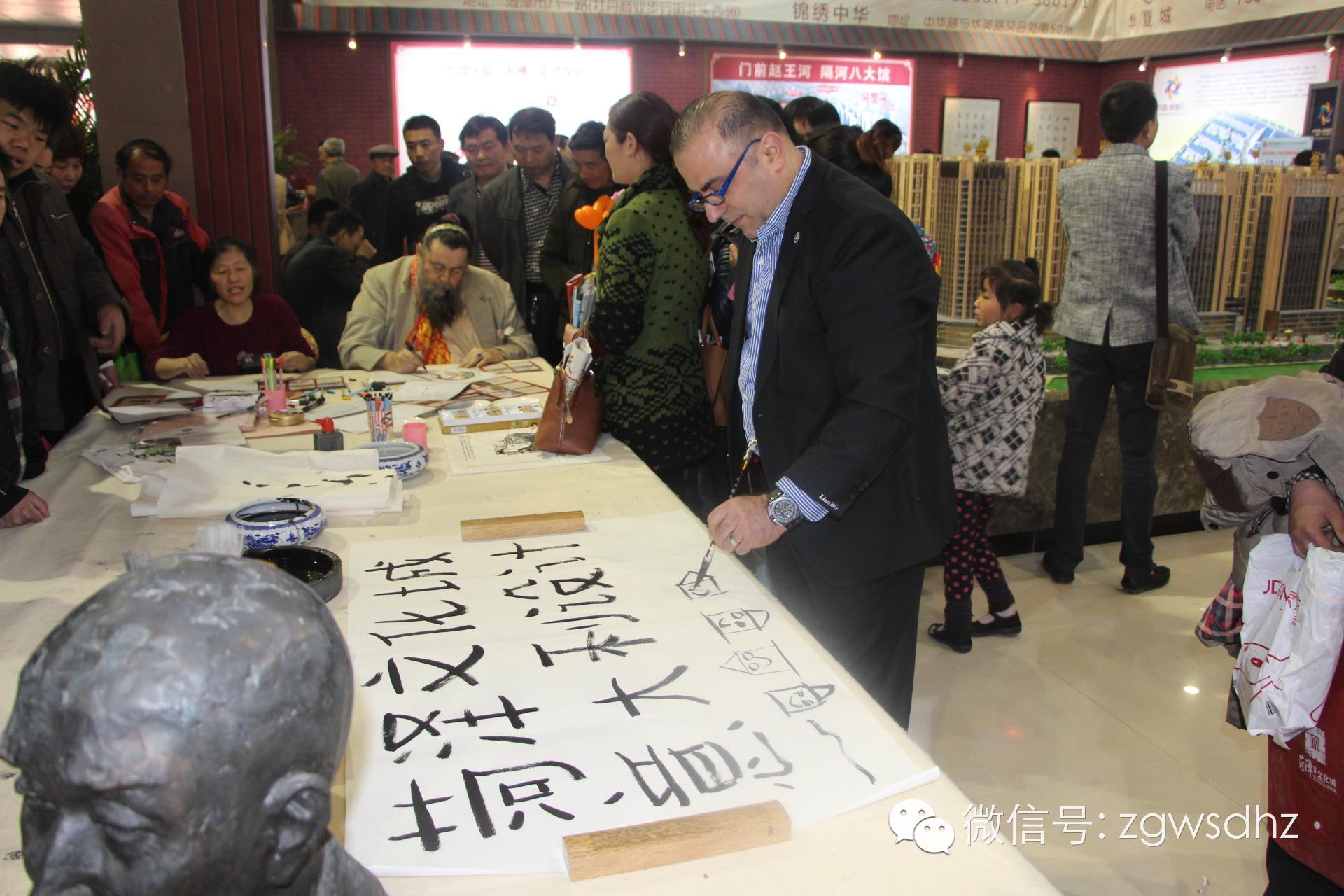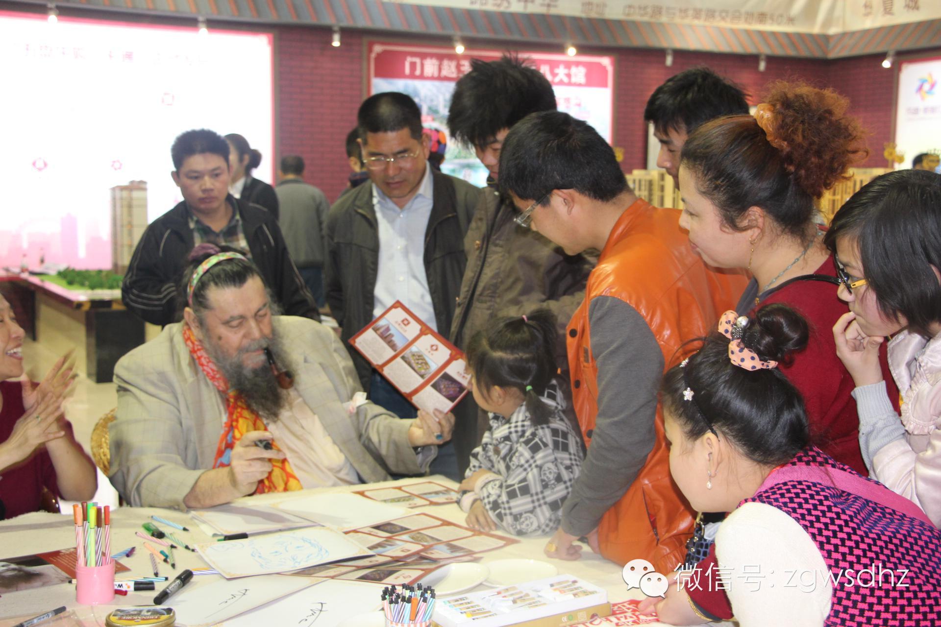 二、意大利建筑学博士、菏泽文化城设计者克里斯,现场为大家签名、作画、书写中文书法赠送与市民朋友,这位友善、和蔼的外国友人,自然受到大家的欢迎,许多市民争相与他合影留念。